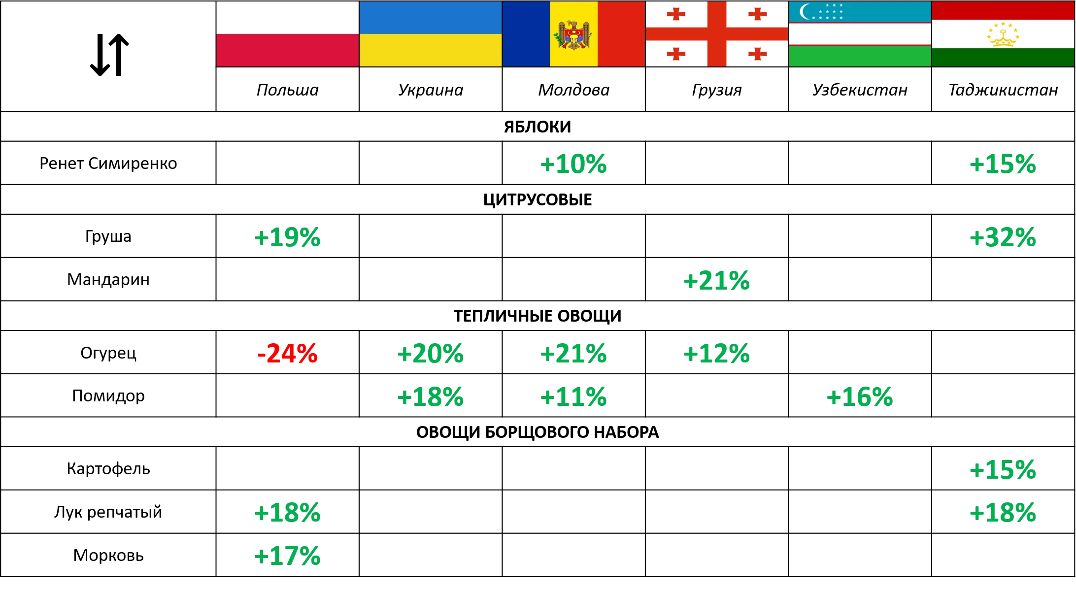 На рынке цитрусовых основные изменения происходили в сегменте мандаринов, которые дорожали сразу в нескольких странах проекта.